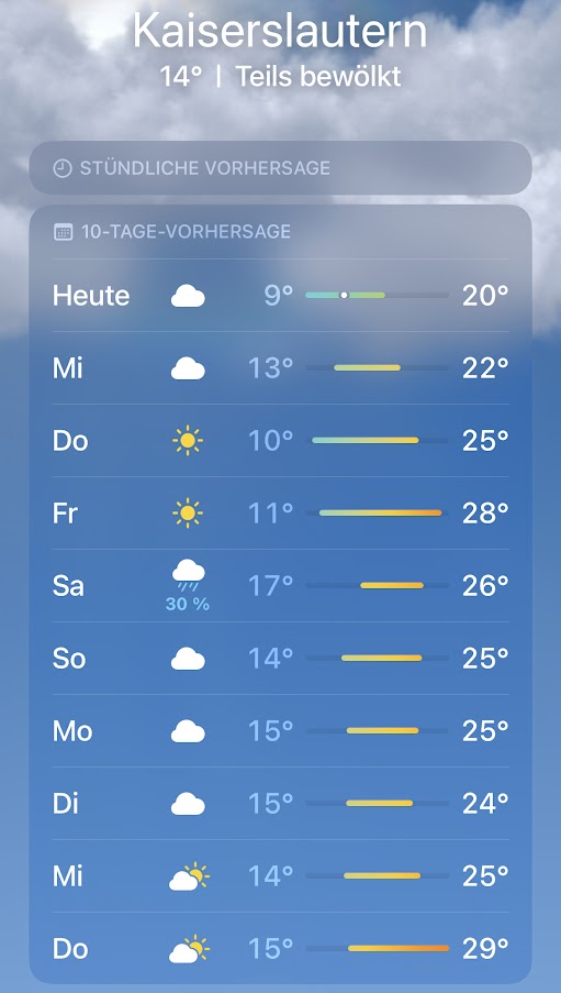 Wenn Ich auf meinem Handy in die Wetter-App schaue, dann soll es heute nicht wärmer werden als 20 Grad!