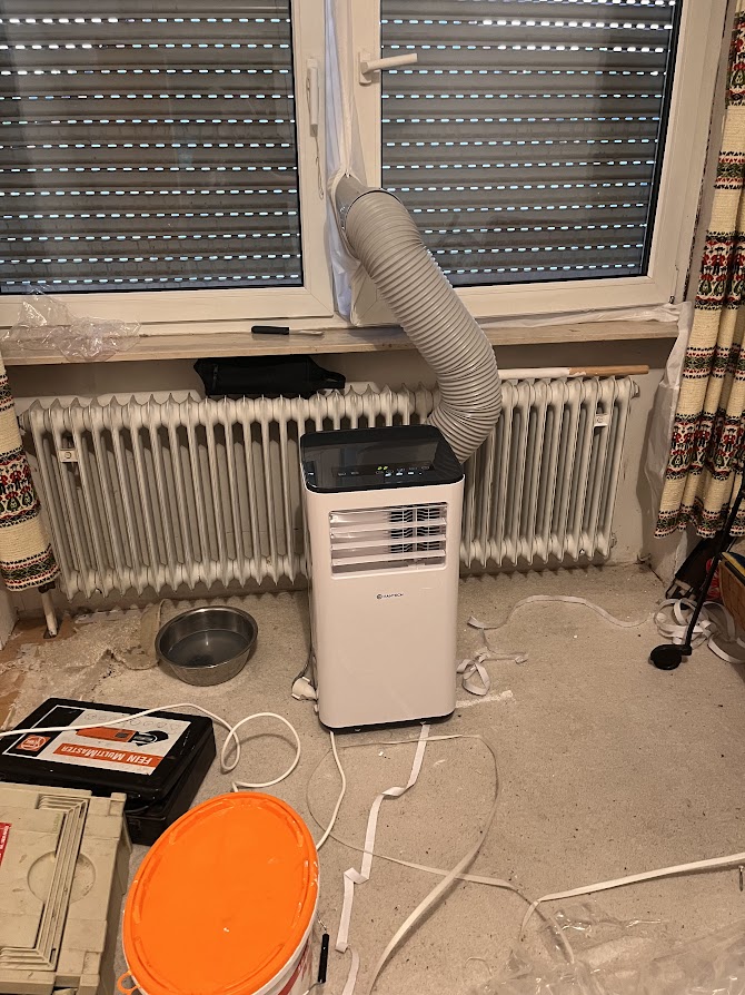 Ich hatte hier in meiner alten Wohnung in Kaiserslautern ja schon mal eine Klimaanlage bevor Ich nach Dresden gezogen bin. Die hab Ich dann irgendwann man dorthin verschiffen lassen um Sie als „Dauerleihgabe“ an meine Firma abzugeben, als es noch kein Homeoffice gab.