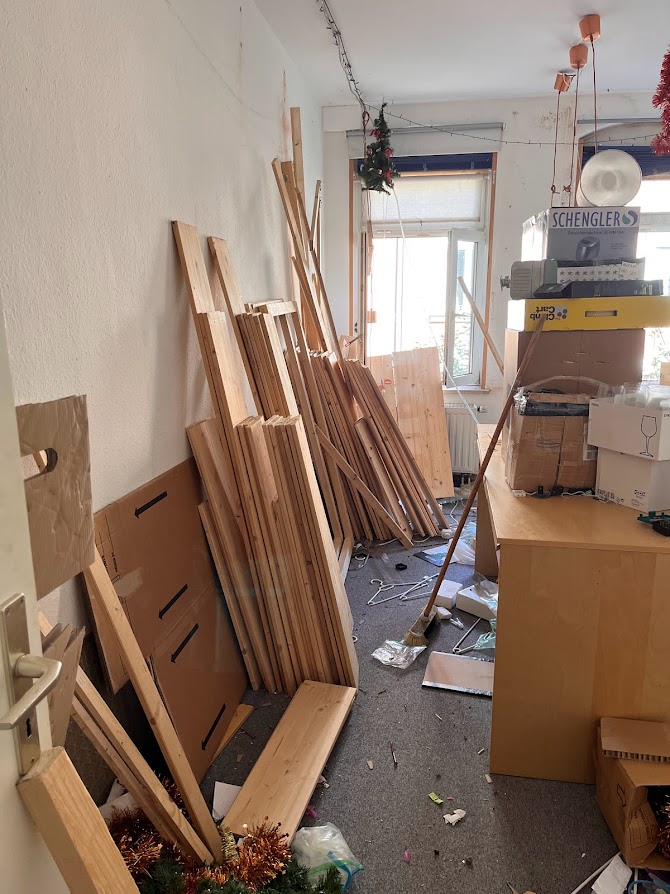 Der Chef und ein Mann hatten den Keller und die Wohnung rucki zucki leer geräumt für Ihre 750 € die sie dafür bekamen. Um 10:30 war der Käse gegessen.