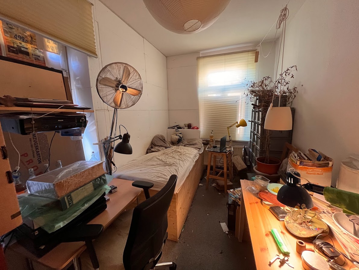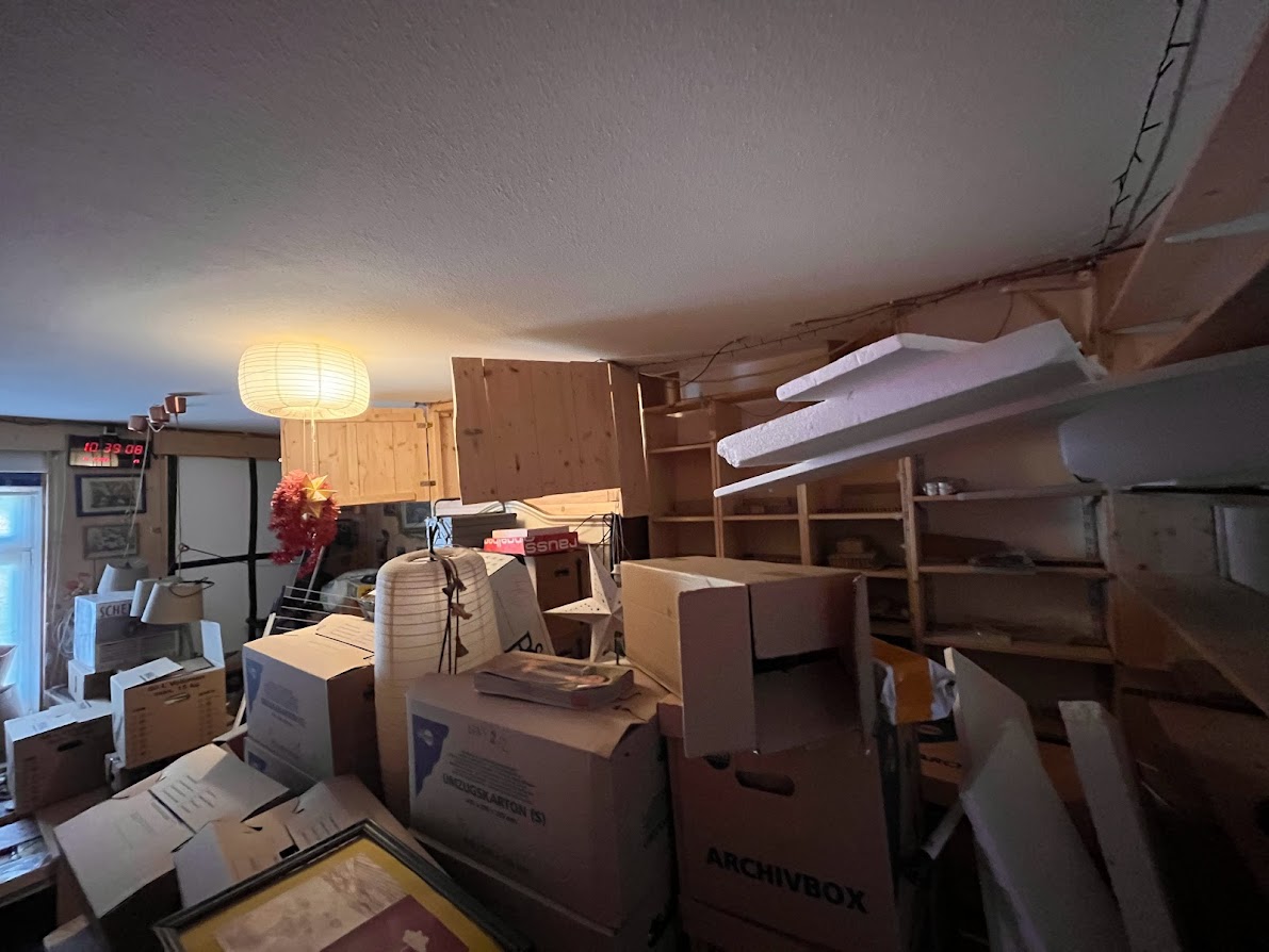 In dem Schlafzimmer, in dem ich die ganze Zeit schon übernachte, stand alles voll mit Regalen und Kisten, in meinem zukünftigen Büro war alles zugestellt mit Regalen und Kisten, oben auf dem Dachboden im alten Schlafzimmer meiner Eltern genauso.