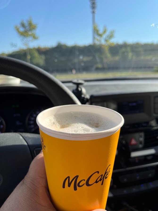 Bei McDonalds auf den Parkplatz gab es dann noch einen Kaffee und zwei Cheeseburger.