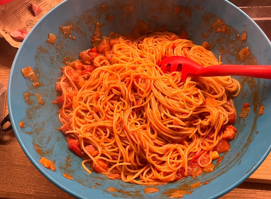 Als wir, Ich glaube es muss 2022 im Sommer gewesen sein, mal eine Freundin meiner Mutter besucht haben, die damals noch in Boppard wohnte, gingen wir zu einem Italiener essen, der direkt am Rhein lag. Wir saßen am Freisitz, schauten aufs Wasser und Ich hatte eine sehr, sehr leckere Spaghetti Armatriciana gegessen. Das erste mal seit ewig.