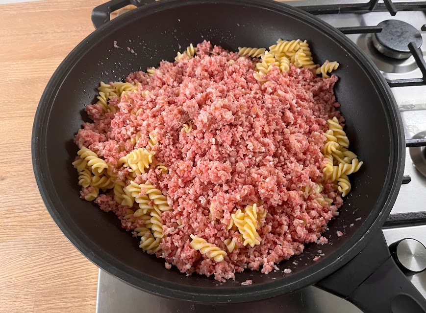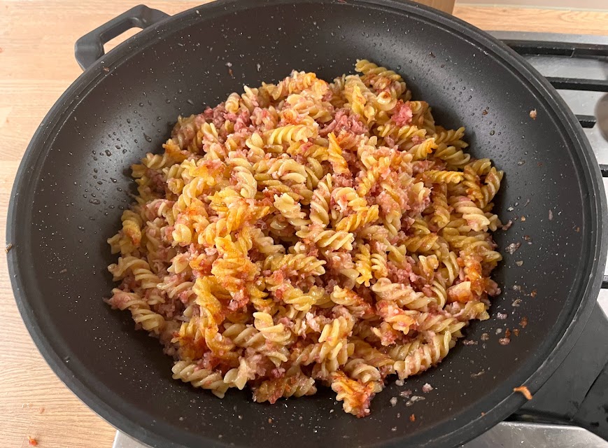 Wenn die Nudeln eine schöne, braune , dunkle Kruste überall haben, die Flamme klein drehen und…