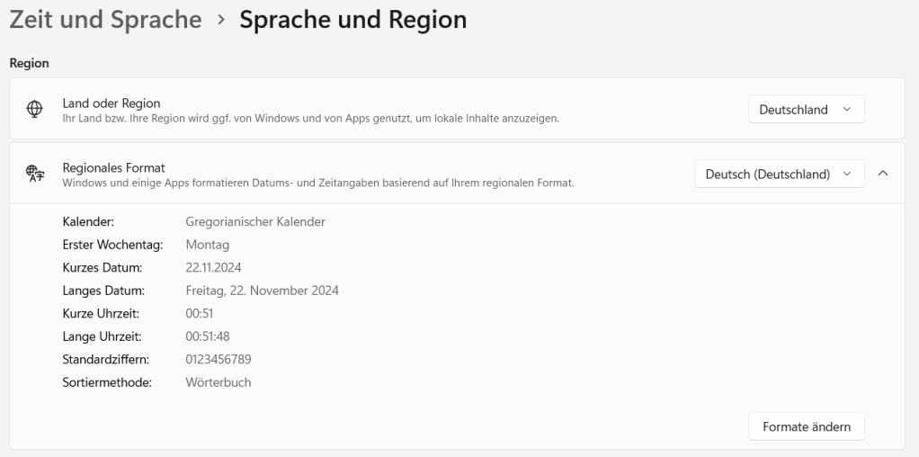 Unten rechte in der Taskleiste stand bei mir nämlich, neben der Uhrzeit, auch schon immer das Datum und da stand dann eben nicht 22.11.2024 sondern eben 22,11,2024!