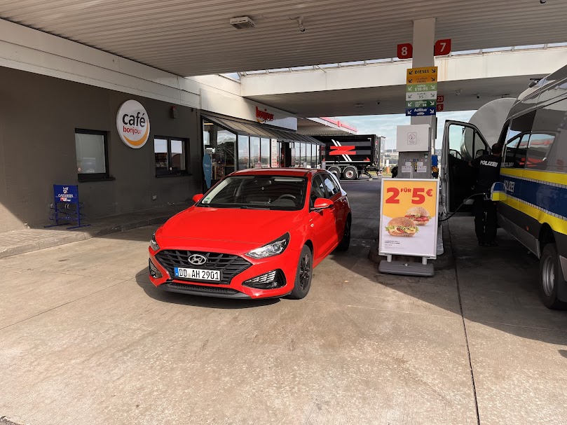 Um 7:30 Uhr war Ich dann endlich auf der Autobahn und um 10:30 machte Ich einen Tank- und Pinkelstopp von 5 Minuten auf dem Rasthof Laucha in Thüringen, etwa auf halber Strecke.