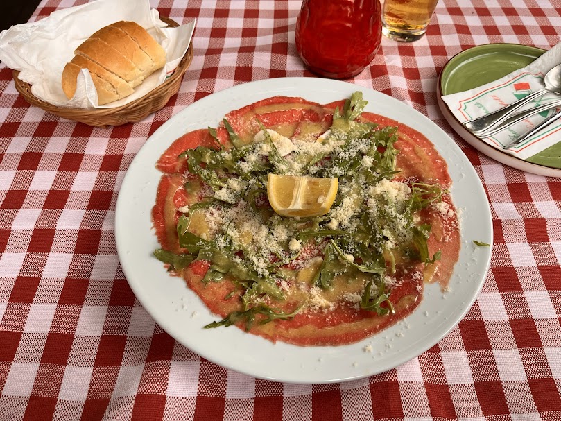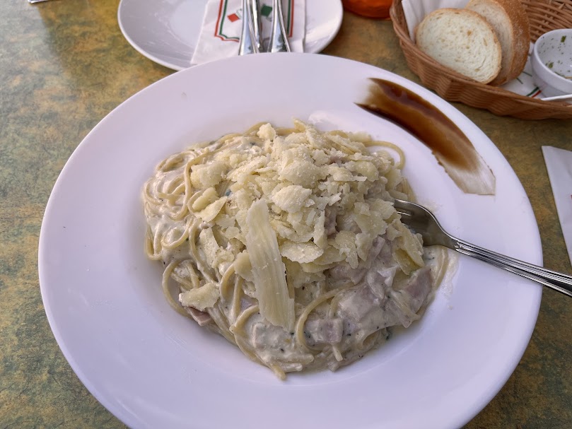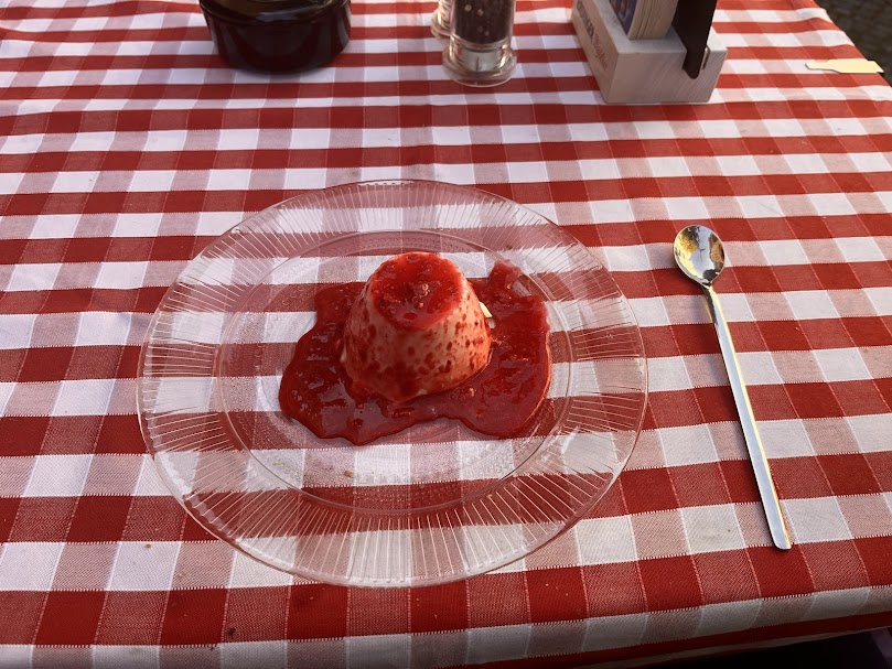 Dort gab es Carpaccio, Pasta und Pana Cotta ohne vergammelte Sauce. Alles sehr lecker.