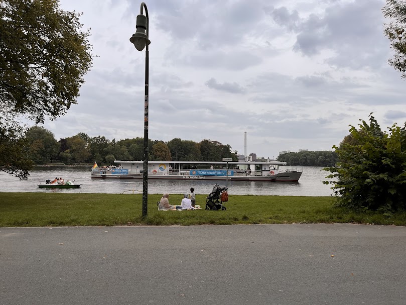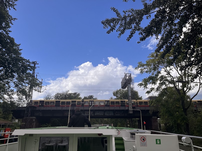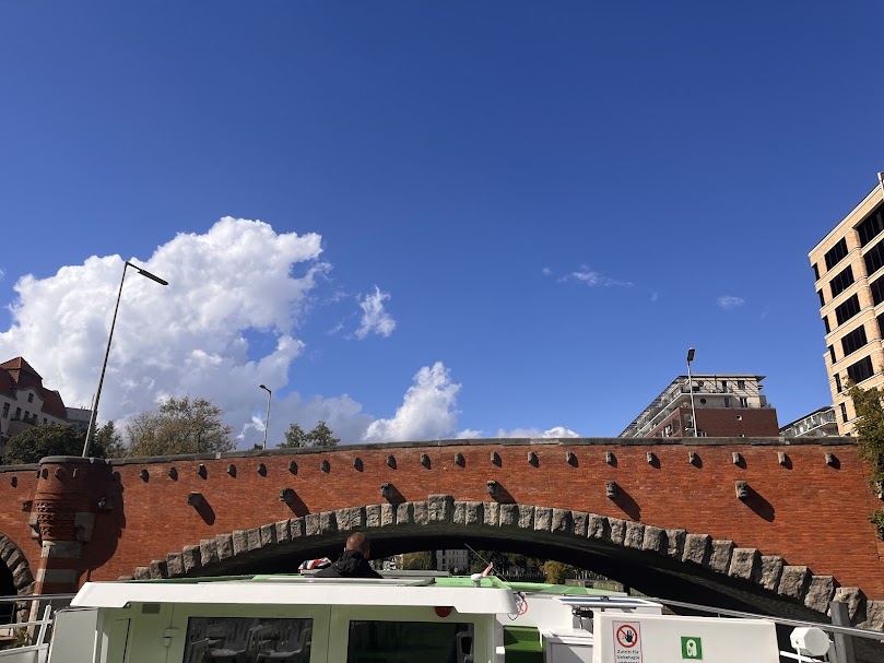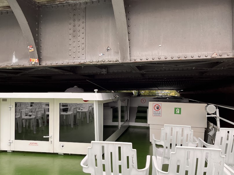 Unterwegs mussten wir am Bonhoefferufer eine dreiviertelstunde warten weil irgendwo ein anderes Schiff havarierte und erst geborgen werden musste. Ich fand das gut, längere Fahrt zum selben Preis.