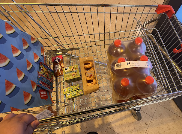 Ich kaufte Klopapier (weil im Hotel alle) und Schnäkes.
