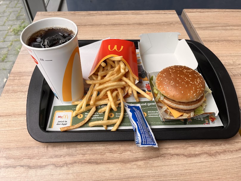 Und da Ich ausser 2 Käsestangen an dem Tag sonst nichts gegessen hatte, fuhr Ich mit der S-Bahn weiter zum Alexanderplatz. Ich setzte mich hin und beobachtete die Menschen ein wenig. Ich bekam schliesslich Lust auf einen Burger. Leider lief Ich zuerst in den falschen laden, nämlich einen der nur Pommes hatte.