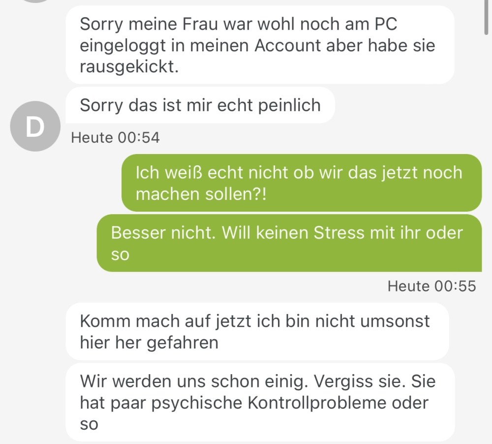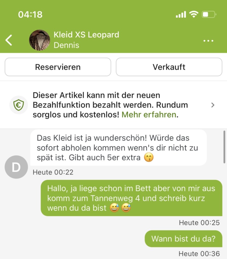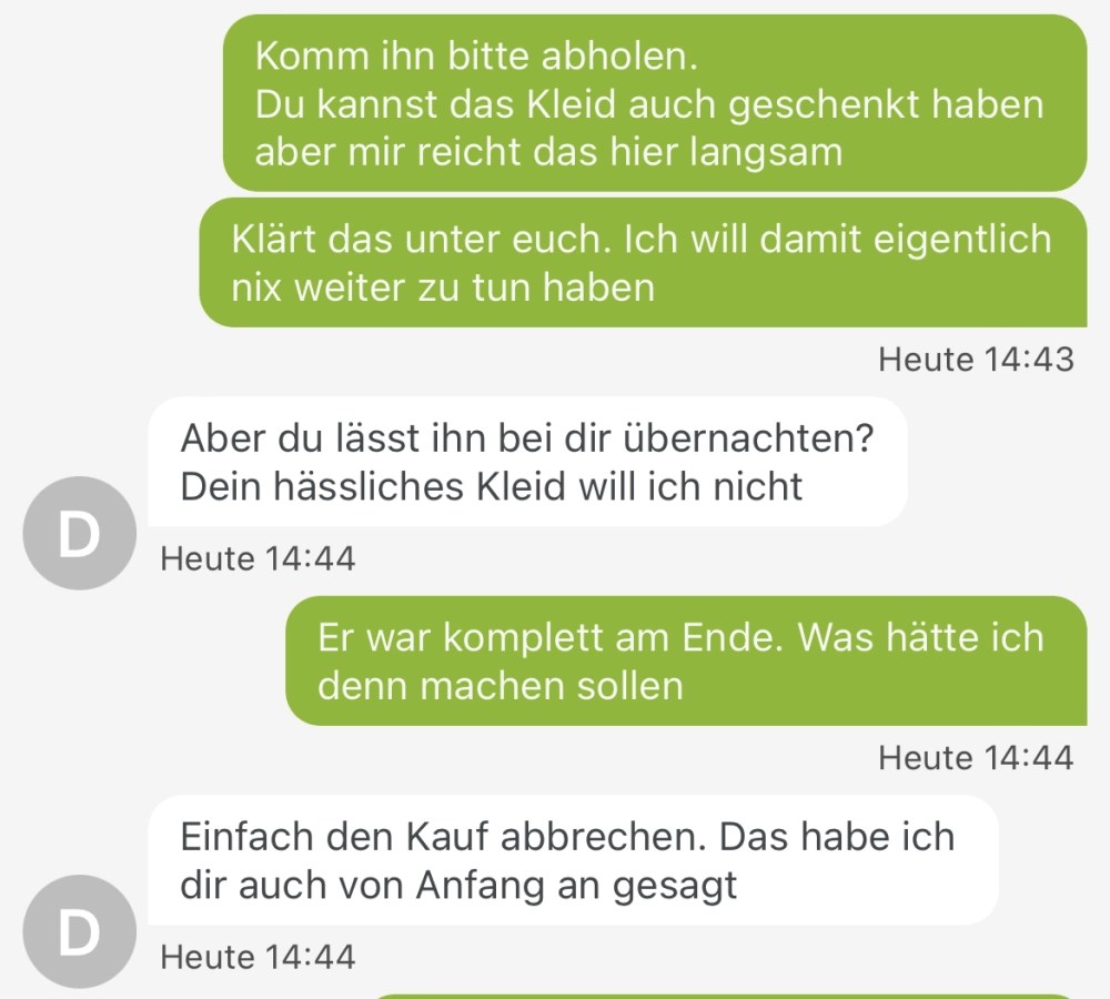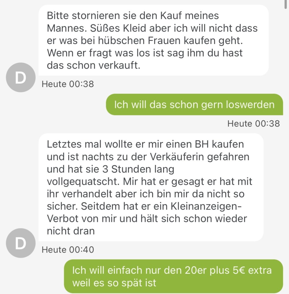 Es gibt ja so Seiten wie Best of Kleinanzeigen oder so, wo lustige Chats mit Sachen wie „Was ledzte Prais“ oder so gesammelt und veröffentlicht werden. Dort hab Ich nicht nur gelernt, dass „VB“ nicht für „Verhandlungsbasis“ steht sondern für „Vest Brais“, sondern da hab Ich auch den aller lustigsten Kleinanzeigen Chat gefunden, den Ich in meinem ganzen Leben je gesehen habe.